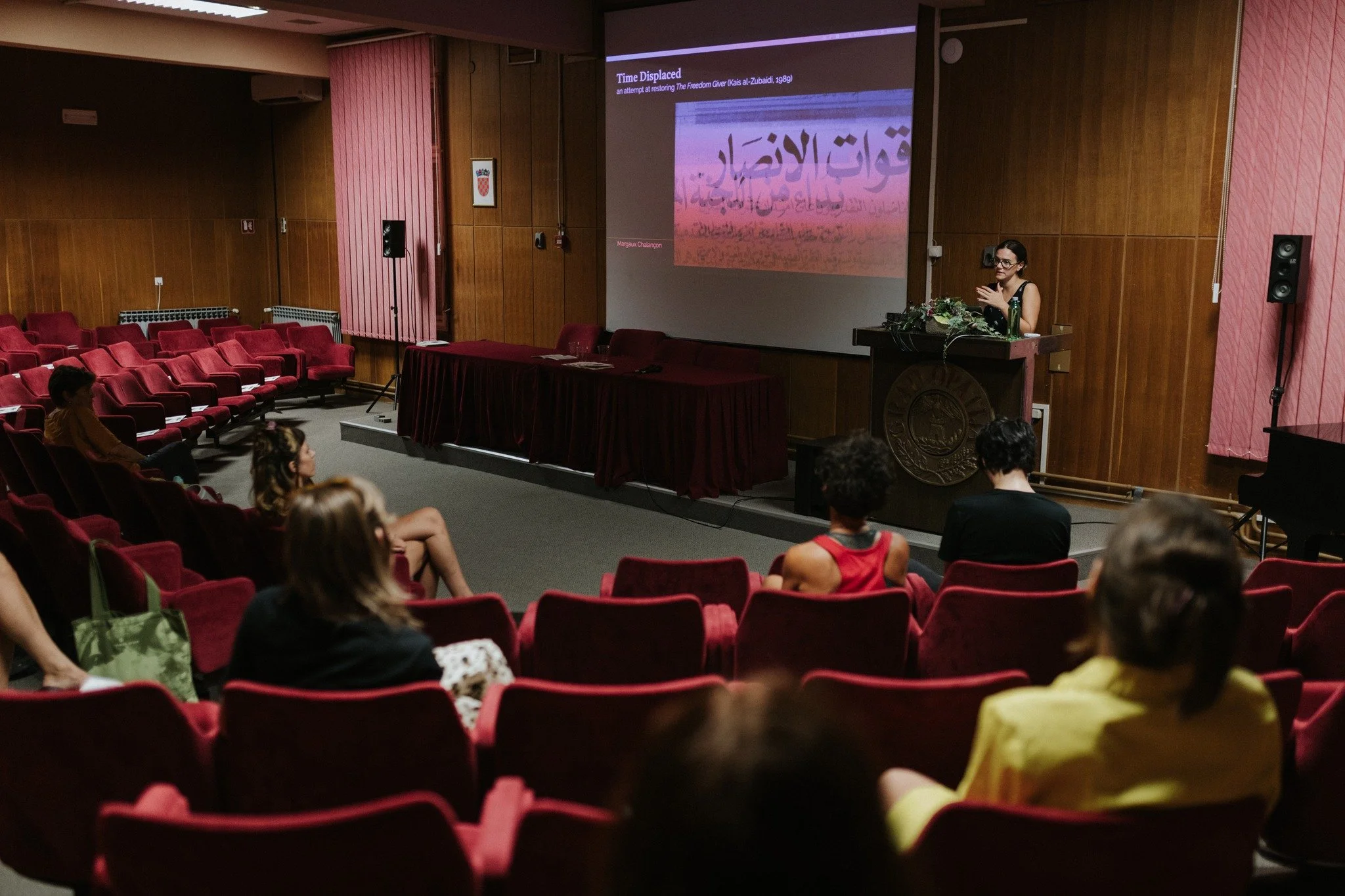 I read some excerpts from my restoration diary Time Displaced, which I wrote while restoring Waheb al Horriyah (The Freedom Giver, al-Zubaidi, 1989). I shared diary entries focusing on the emotional reactions provoked by the restoration work, along with some images of the process.